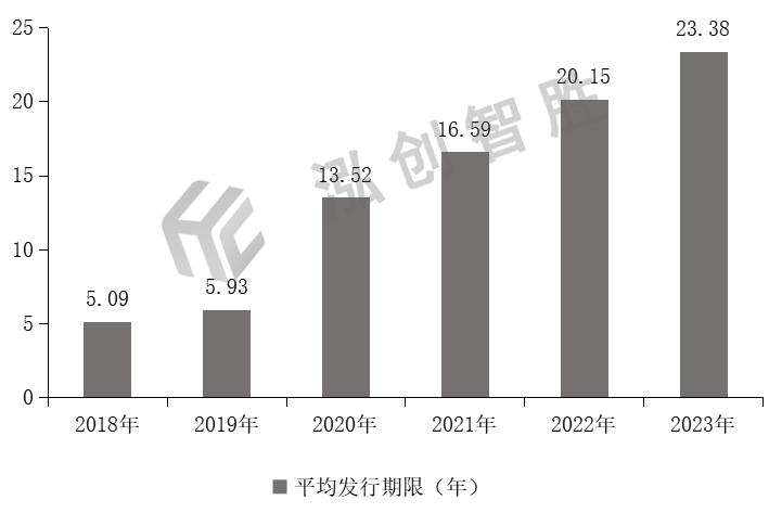 数据来源:专项债券信息网(www.zhuanxiangzhaiquan.com)2018—2023年江西省新增专项债券平均发行期限分别为5.09年、5.93年、13.52年、16.59年、20.15年、23.38年。平均发行期限整体呈现延长趋势。江西省2018—2023年新增专项债券平均发行期限情况