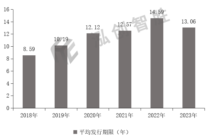 数据来源:专项债券信息网(www.zhuanxiangzhaiquan.com)内蒙古自治区2018—2023年新增专项债券每年平均发行期限分别为:8.59年、10.19年、12.12年、12.57年、14.59年、13.06年,整体呈逐年上升趋势,从2020年开始,内蒙古自治区平均发行期限均低于全国平均发行期限。内蒙古自治区2018—2023年新增专项债券平均发行期限情况