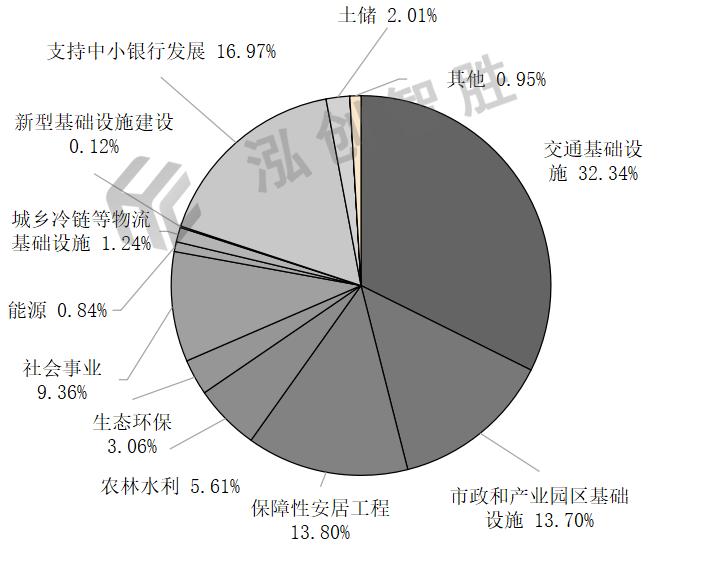 内蒙古自治区2018—2023年专项债券资金投向领域涉及交通基础设施、市政和产业园区基础设施、保障性安居工程、农林水利、生态环保、社会事业、能源、城乡冷链等物流基础设施、新型基础设施建设、支持中小银行发展等领域。交通基础设施领域发行规模最大,六年累计发行规模占比为32.34%;新型基础设施建设和能源发行规模最小,两个领域合计占比仅为0.96%。内蒙古自治区2018—2023年新增专项债券资金投向情况