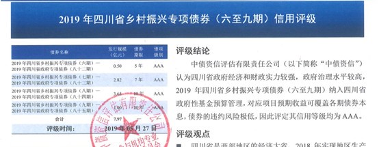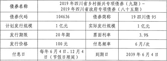 2019年6月3日,四川省首次成功发行了超长期限地方政府专项债券,其中包括全国首只20年期乡村振兴专项债券。