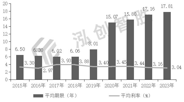 数据来源:专项债券信息网(www.zhuanxiangzhaiquan.com)新增专项债券平均发行期限由2015年的6.50年延长到2022年的17.81年,延长了11.31年,债券发行期限长期化趋势明显。新增专项债券平均发行利率由2015年的3.30%下降为2023年的3.04%,下降了26BP,融资成本进一步降低。图 4 2015—2022年新增专项债券平均发行期限、平均发行利率情况