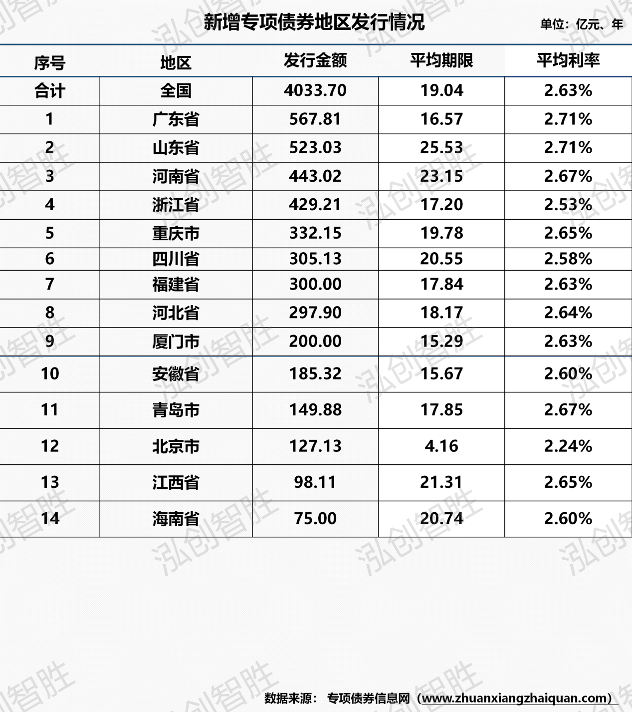 截至3月3日,2024年新增专项债券已发行4034亿元,平均期限19.04年,平均利率2.63%。新增专项债券平均期限超过20年的涉及五个省份,分别是山东省25.53年、河南省23.15年、江西省21.31年、海南省20.74年、四川省20.55年。截至3月3日,全国已发行的176期地方政府债券,发行规模合计9444.11亿元,其中分年还本债券17期,涉及金额816.45亿元,全部为新增专项债券,其余债券均采取到期一次性还本。
