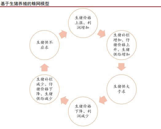我国是世界上最大的养猪大国和猪肉消费大国,猪肉是城乡居民“菜篮子”里最重要的组成部分。生猪产业是我国的战略性产业,也是我国农业的支柱性产业,我国生猪产业产值达1.3万亿,是小麦、玉米和水稻三大粮食作物的总和。生猪对于整个产业,对于整个社会的稳定和发展都具有十分重要的意义。与世界先进水平相比,我国种猪性能还存在差距,育种基础工作相对薄弱。生猪养殖是经过种猪繁育、仔猪育肥等一系列培育和繁殖直到商品肉猪的过程。其中种猪生产、销售的目的是育种、扩繁,包括曾祖代种猪、祖代种猪和父母代种猪;仔猪指出生不久的小猪,可以用于继续育肥、育种或者直接出售;商品肉猪指以提供猪肉为目的销售的育肥猪。从生猪的养殖周期来看,母猪出生后一般育肥4个月成为后备母猪,后备母猪育肥4个月成为能繁母猪,能繁母猪妊娠4个月生出仔猪,仔猪育肥6个月成为生猪后即可出栏。所以,新生母猪到生猪出栏一般要18个月。生猪养殖主要有三种经营模式:农户散养、公司+农户、自育自繁自养。为了寻求成本最小化,过去这些年国内的养殖模式也在升级转变。在2000年之前,国内的主流养殖方式是农户散养生猪。2000年之后,随着现代动保产业、工业饲料和杂交技术的发展,生猪产出效率更高了。以温氏股份为代表的“公司+农户”模式随之诞生。在公司+农户模式下,公司主要负责种猪繁育和育仔,为农户提供仔猪、饲料、疫苗兽药及技术人员支持,等到生猪达到出栏重量后,公司再回收销售,支付农户代养费。这种农户代养的养殖模式属于轻资产模式,可以快速提升养殖规模,同时能够控制成本,但是抗风险能力较弱。温氏股份、新希望就是采用这种经营模式。2015年之后,工业化、标准化、精细化、自动化养殖使得产出效率有了明显提升。自繁自养的工业化养殖开始替代“公司+农户”,未来这种模式也将会成为时代主流。在自育自繁自养一体化模式下,企业自建标准化养殖场,自聘养殖场负责人、技术人员和养殖工人。这种模式属于重资产模式,前期资金投入高、土地需求大、折旧多,但过程可控、能够更好地降本增效、抗风险能力较强。牧原集团就是这种经营模式。生猪养殖是典型的周期行业,养殖环节受到猪价周期波动的影响,所以生猪养殖的毛利率与净利率波动较大,呈现明显的周期性特征。生猪生产遵从蛛网模型产生了猪周期。当猪价处于上行周期时,生猪养殖的利润率提高,散养殖户扩产意愿较强,进行补栏。这时能繁母猪补栏量、生猪存栏量随之上升,仔猪的价格跟随猪价同步上升。随着生猪供应增加,逐渐超过市场需求时,生猪价格进入下行阶段,行业利润率降低。当行业长期亏损时,淘汰母猪上升、生猪存栏下降,仔猪价格同步下降,生猪的供应逐步减少。而当生猪供应降低到供不应求时,价格再次进入上行通道,之后再次进入下一轮猪周期。