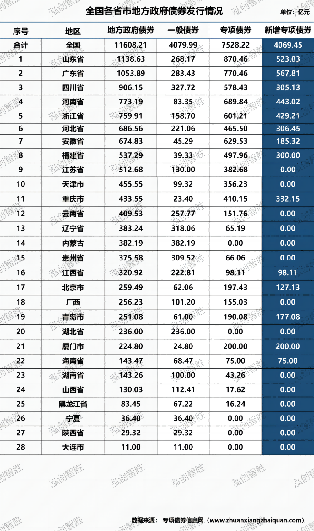 根据查询专项债券信息网数据显示,截至3月17日,2024年地方债已发行11608亿元,其中新增专项债券发行4069亿元。