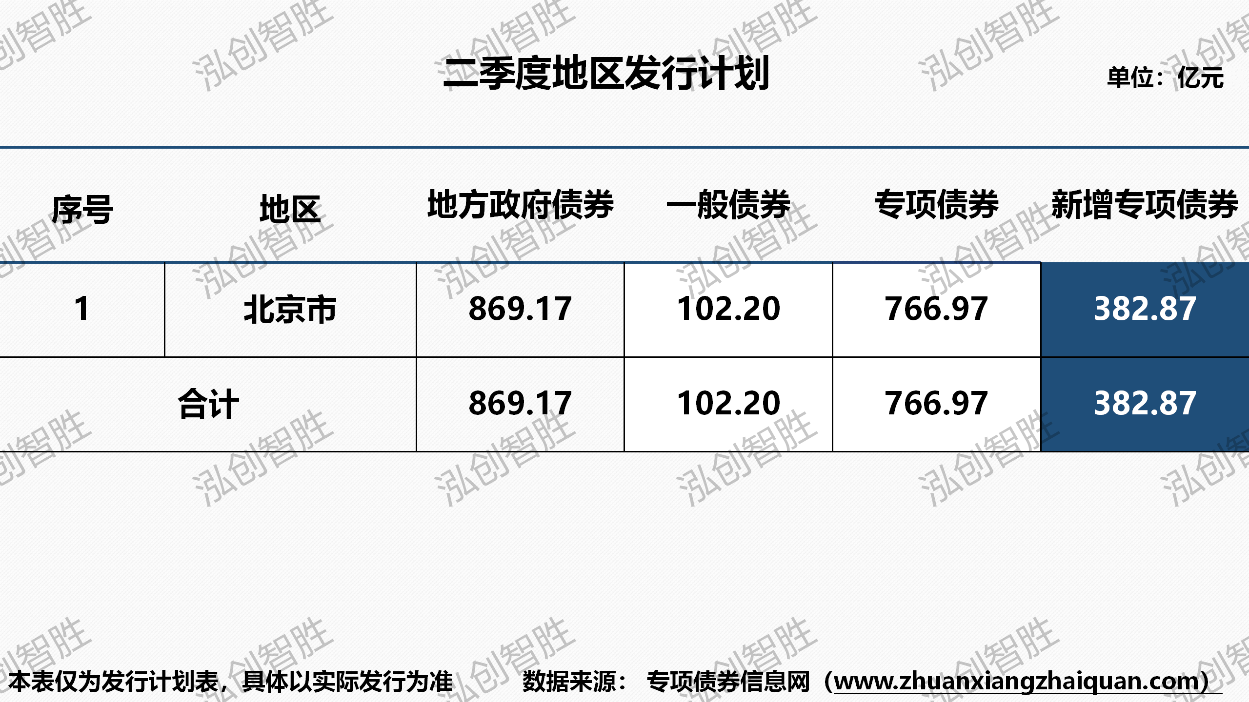 截至3月17日,北京已披露二季度地方债券发行计划,计划发行地方政府债券869亿元,其中新增债券451亿元(含专项债券383亿元),再融资债券418亿元。