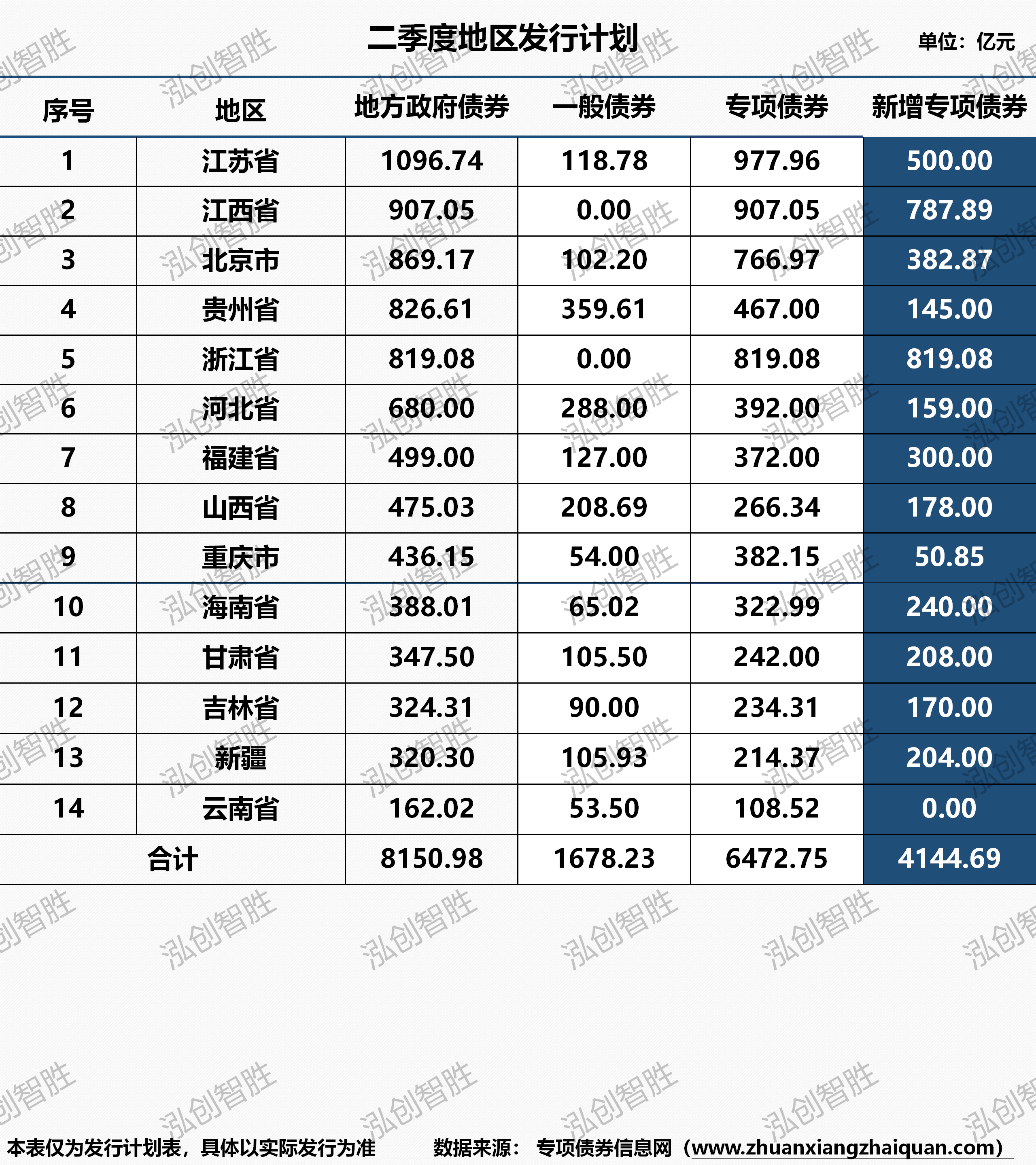 新增债券569亿元(含专项债券497亿元),再融资债券1089亿元。本周共有七个地区(湖北、江西、贵州、江苏、甘肃、新疆、陕西)计划发行32期地方政府债券,发行规模1658亿元。其中,新增专项债券13期,发行规模497亿元。本周发行地方政府债券平均期限为10.69年,其中新增专项债券平均期限12.71年。