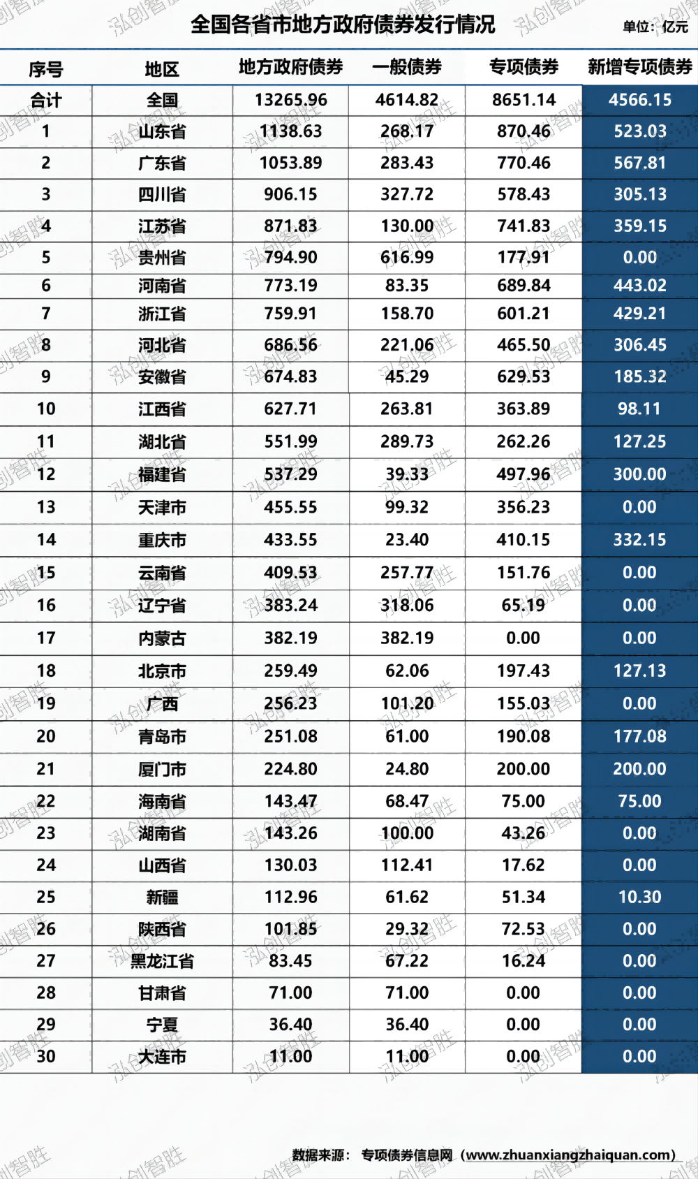 根据查询专项债券信息网数据显示,截至3月24日,2024年地方债已发行13266亿元,其中新增专项债券发行4566亿元。