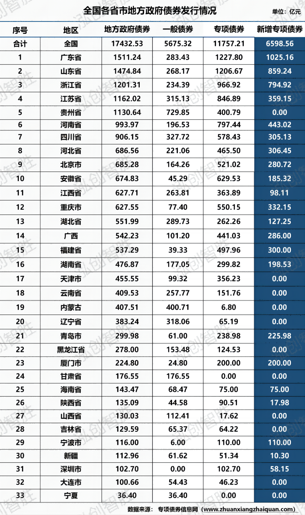 根据查询专项债券信息网数据显示,截至4月21日,2024年地方债已发行17433亿元,其中新增专项债券发行6538.36亿元(注:不含60.2亿元支持中小银行发展专项债券)。