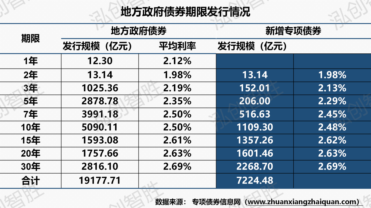 其中,新增债券768亿元(含专项债券591亿元);本周共有五个地区(陕西、山西、江西、内蒙古、山东)成功发行24期地方政府债券,发行规模1020亿元;其中,发行16期新增专项债券,发行规模591亿元。本周发行地方政府债券平均期限为16.78年,新增专项债券平均期限22.34年。本周发行新增专项债券涉及六种期限类型,5年期、7年期、10年期、15年期、20年期、30年期。其中,发行规模最大的为30年期,计划发行318.76亿元,占比为53.89%;发行规模最小的为5年期,计划发行19.63亿元,占比为3.32%。本周共发行24期地方政府债券,发行规模合计1020.41亿元;其中,江西涉及1期新增专项债券采取分年还本。其中,新增债券960亿元(含专项债券921亿元);广东计划发行1期再融资一般债券柜台债,计划发行规模20亿元。下周预计共有六个地区(贵州、福建、广东、青岛、山东、吉林)计划发行33期地方政府债券,发行规模1695亿元;其中,计划发行21期新增专项债券,发行规模921亿元。下周预计发行地方政府债券平均期限为12.98年,新增专项债券平均期限17.39年。下周预计发行新增专项债券涉及六种期限类型,5年期、7年期、10年期、15年期、20年期、30年期。其中,发行规模最大的为20年期,计划发行266.68亿元,占比为28.95%;发行规模最小的为5年期,计划发行14.35亿元,占比为1.56%。下周预计发行33期地方政府债券,发行规模合计1695.00亿元;其中,涉及6期新增专项债券采取分年还本。附表1:2018-2024年地方政府债券月发行情况