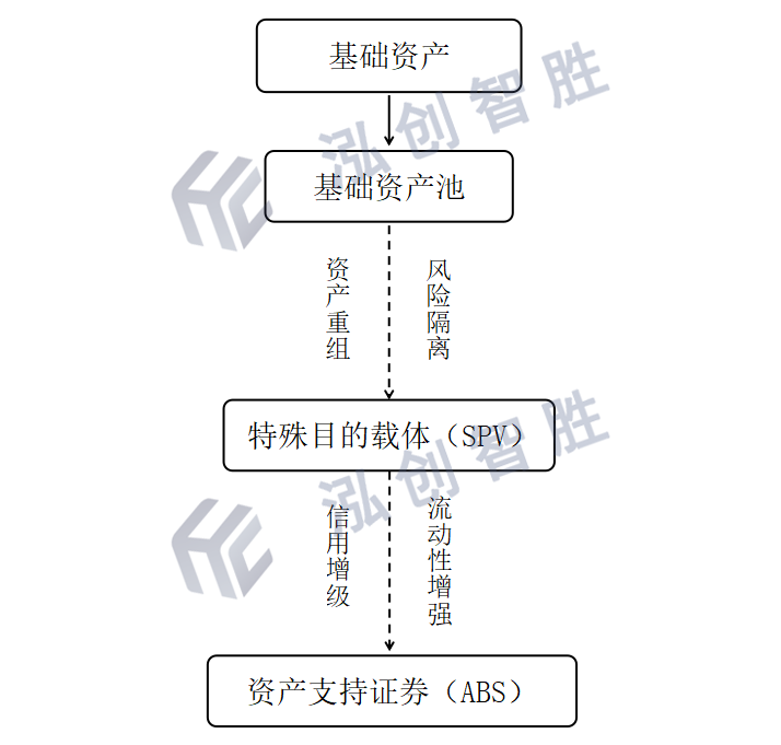 根据《业务管理规定》第三条,基础资产是指符合法律法规规定,权属明确,可以产生独立、可预测的现金流且可特定化的财产权利或者财产。基础资产可以是单项财产权利或者财产,也可以是多项财产权利或者财产构成的资产组合。基础资产可以是企业应收款、租赁债权、信贷资产、信托受益权等财产权利,基础设施、商业物业等不动产财产或不动产收益权,以及中国证监会认可的其他财产或财产权利。资产证券化的发起人会根据自身的融资要求、资产池金额规模、预期期限、资产类别等总体特征并结合市场情况,对基础资产进行规划。通过设定遴选标准,选择备选资产,然后从备选资产中挑选组合构成基础资产池。2.设立SPV