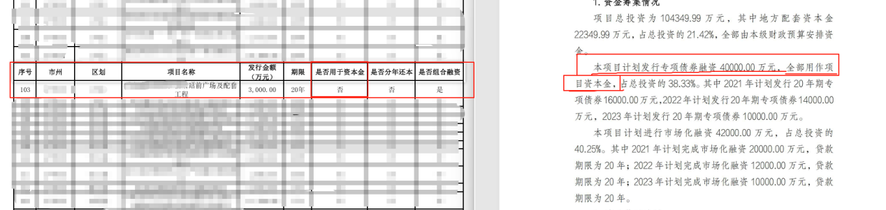 站前广场配套项目:在2025年5月份发行批次中,项目清单信息显示,该项目不存在专项债作资本金,但根据项目方案中披露内容,该项目计划发行专项债券总额40000万元,全部作为项目资本金。