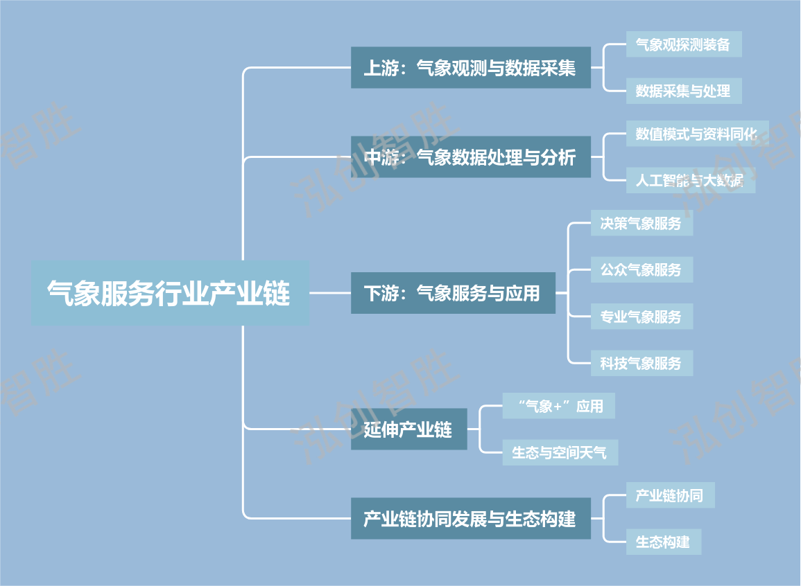 下游环节主要面向公众和行业提供气象服务,包括决策气象服务、公众气象服务、专业气象服务和科技服务等。