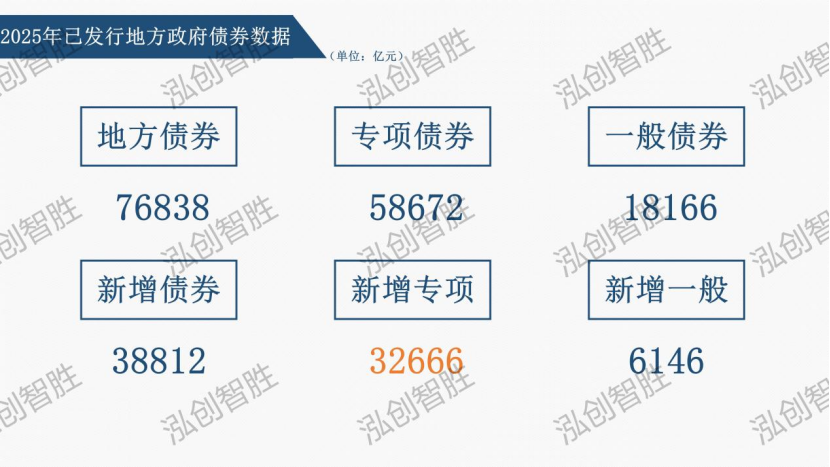 根据查询专项债券信息网数据,截至8月31日,2025年地方债已发行76838亿元,其中新增专项债32666亿元(占比42.51%)。