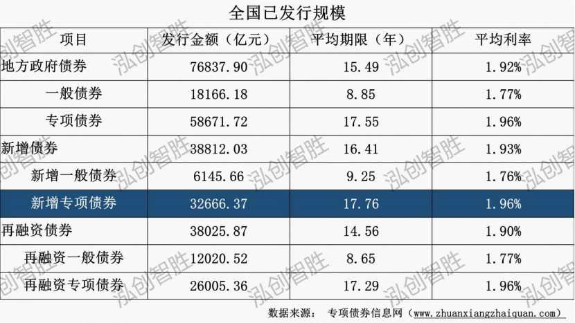 截至8月31日,2025年新增专项债券已发行32666亿元,平均期限17.76年,平均利率1.96%。