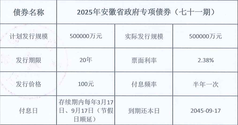 9月16日,安徽省首批政府投资基金项目成功发行。该批次项目发行金额50亿元,发行期限为20年期,发行利率2.38%,募集资金将注入“合肥兴泰集团所属创业投资类政府投资基金”与“合肥产投集团所属创业投资类政府投资基金”。
