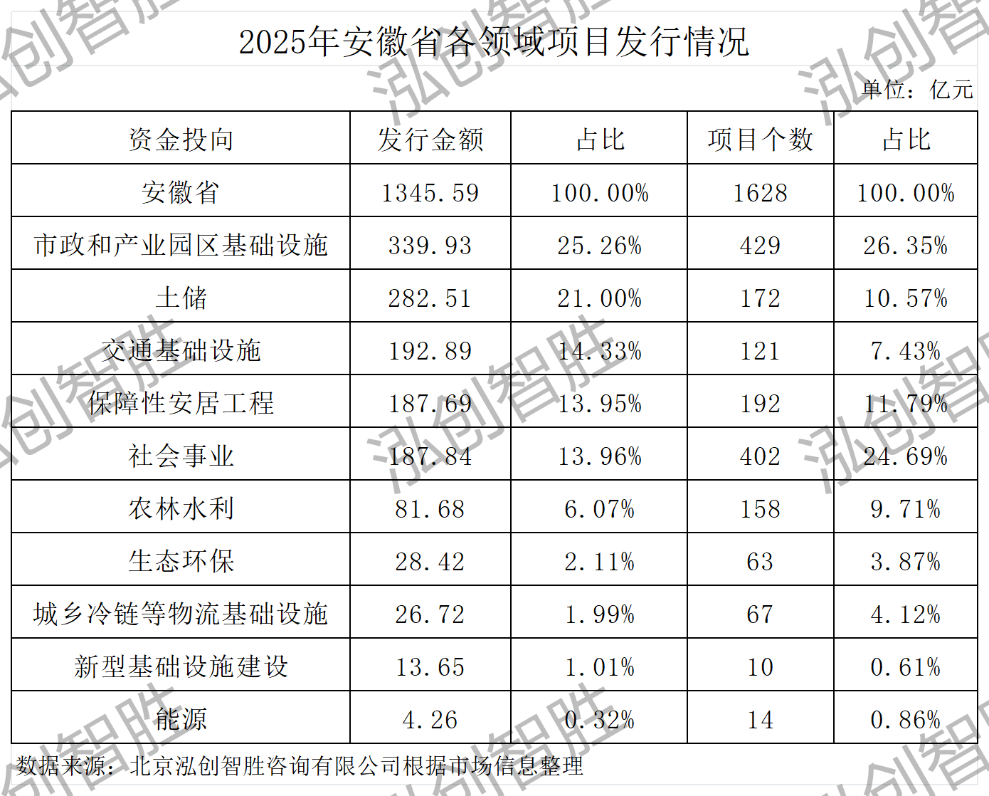 2025年安徽省发行的1628个建设类项目中: