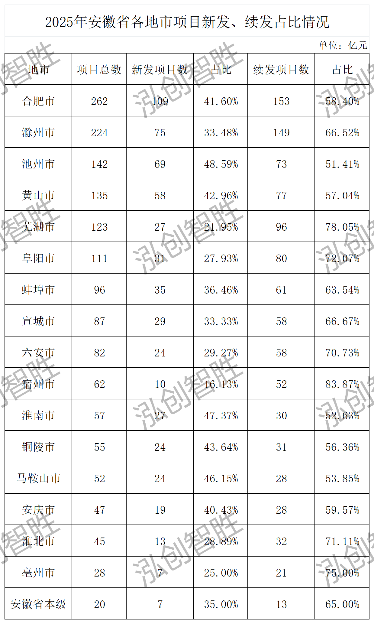 新发项目比例最高:池州市新发项目69个,占该市建设类项目总数的48.59%,高于全省平均水平,反映当地建设需求较为旺盛;