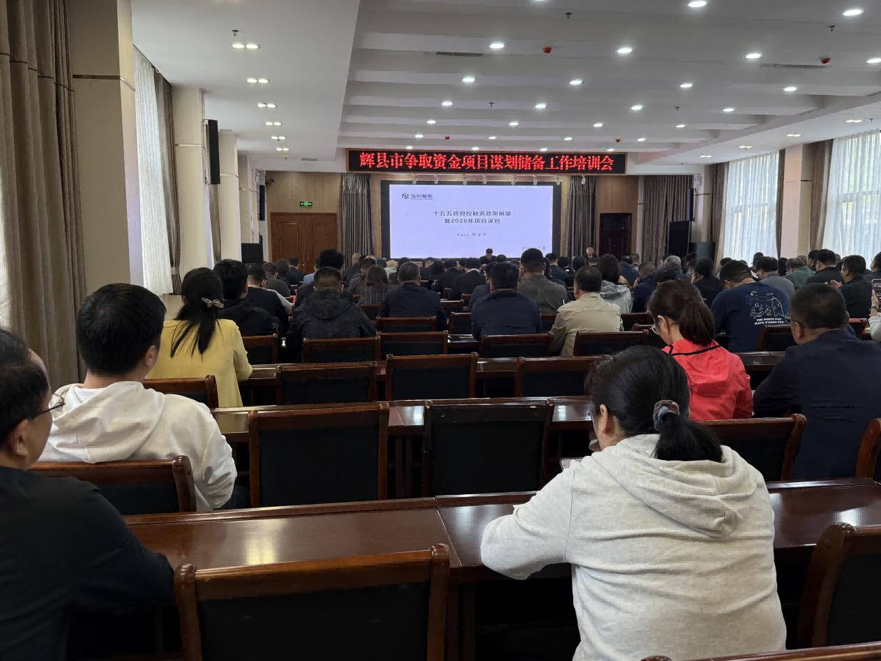在当前严峻的态势下,为主动适应新发展格局下的投融资政策要求,提升全县各级干部谋划项目、运用金融工具的能力,为县域经济高质量发展注入新动能,2025年9月24日北京泓创智胜咨询有限公司受邀在辉县市人民政府举行了《十五五政府投融资政策展望暨2026年项目谋划》专题培训。会议由辉县市委常委,辉县市人民政府党组副书记、副市长主持,各乡镇(街道)、局委主要负责同志和业务骨干参会。