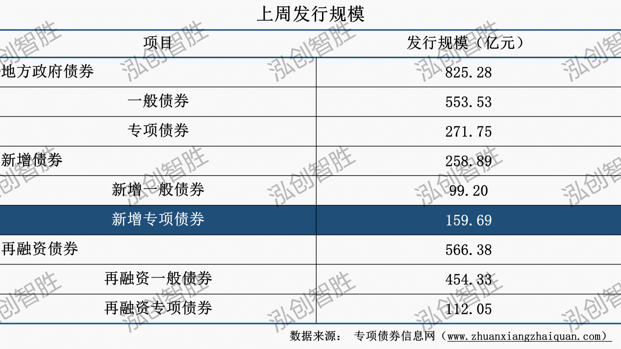上周地方政府债券发行规模825亿元;