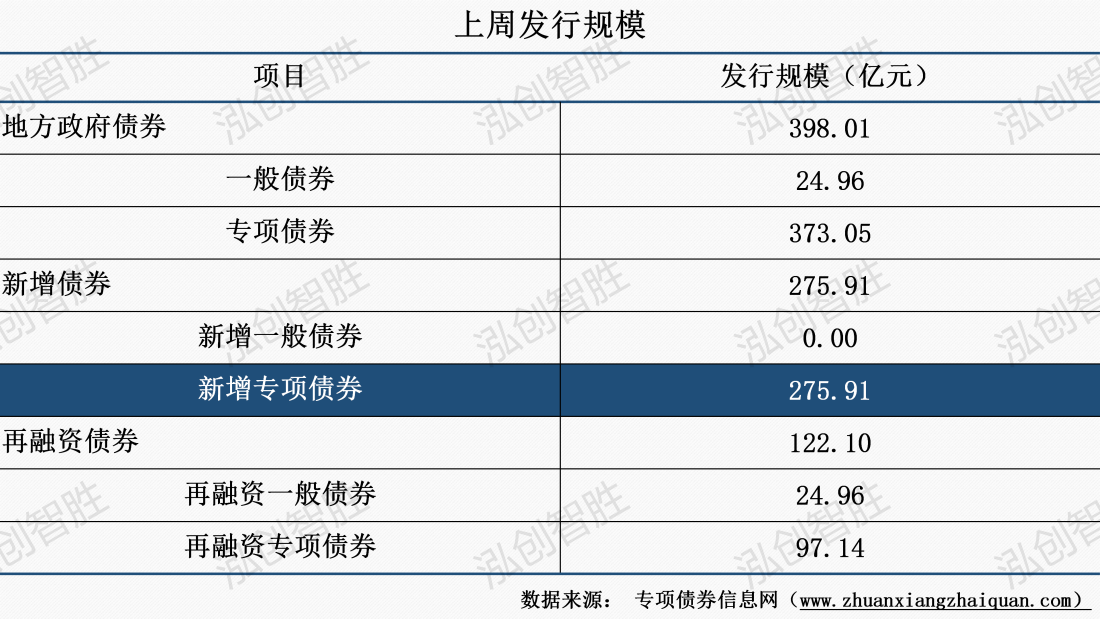 上周地方政府债券发行规模398亿元;