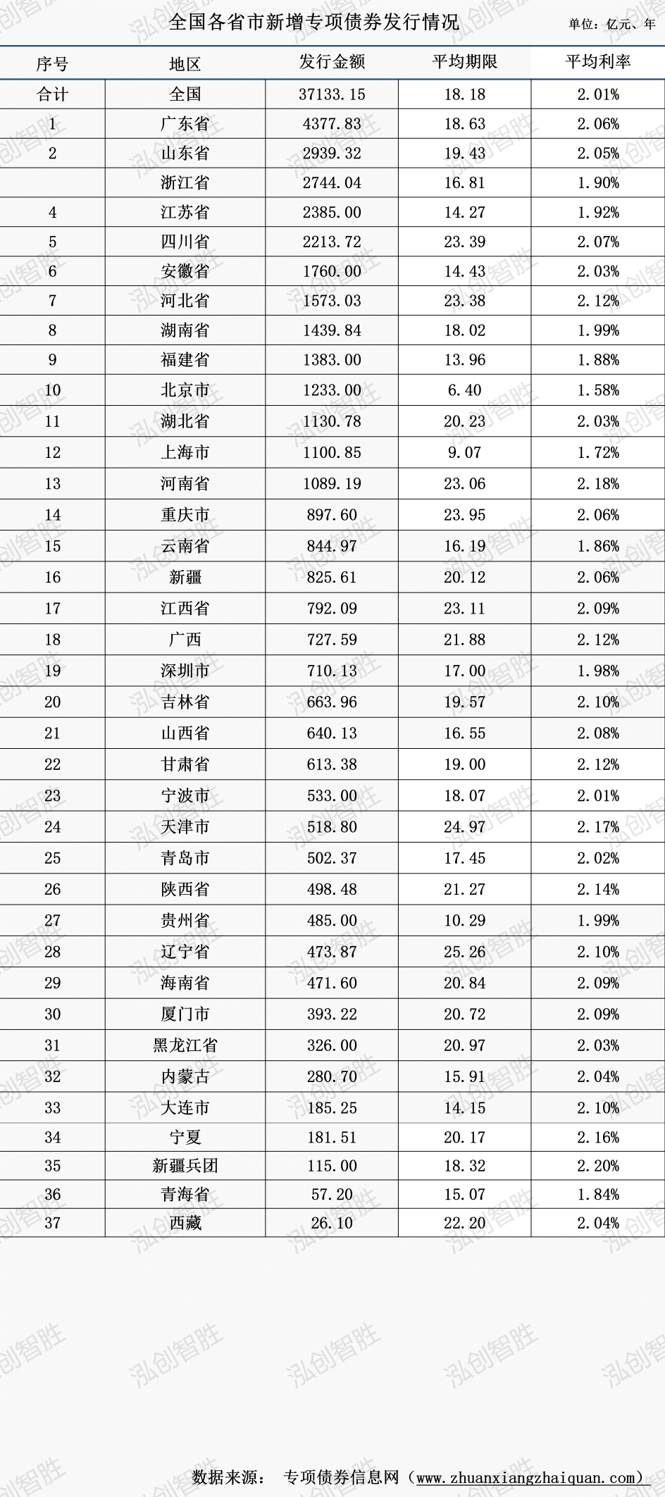 截至10月19日,2025年新增专项债券已发行37133亿元,平均期限18.18年,平均利率2.01%。