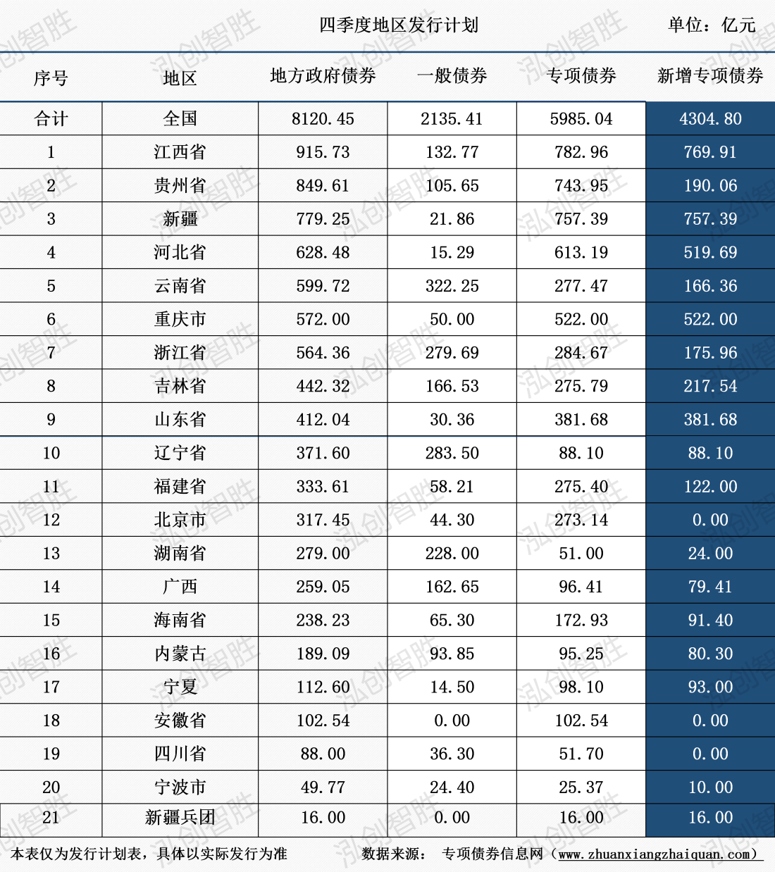 截至10月19日,全国21个发行主体已披露四季度地方政府债券发行计划,计划发行规模8120亿元。