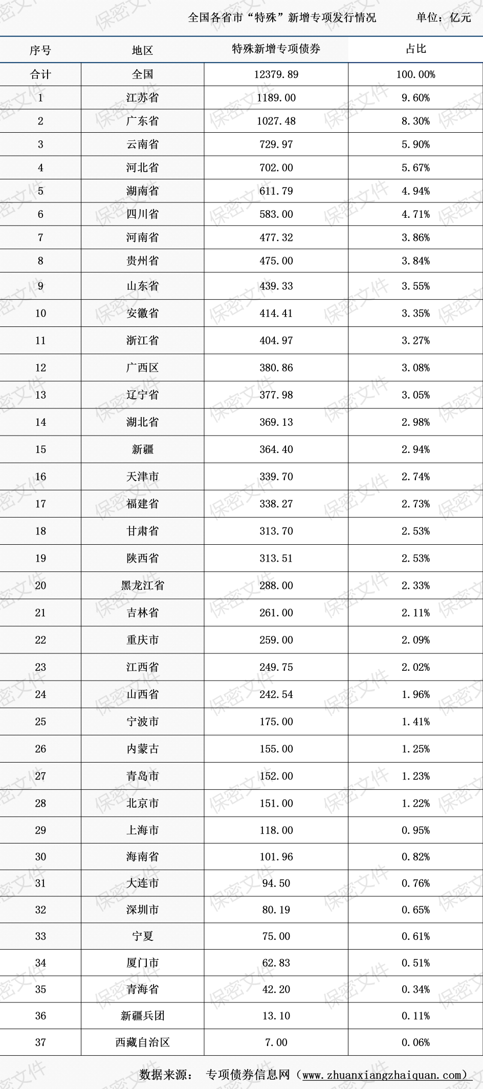 截至10月19日,已有江苏省、广东省等37个地区发行“特殊”新增专项债券,发行规模12379.8885亿元;