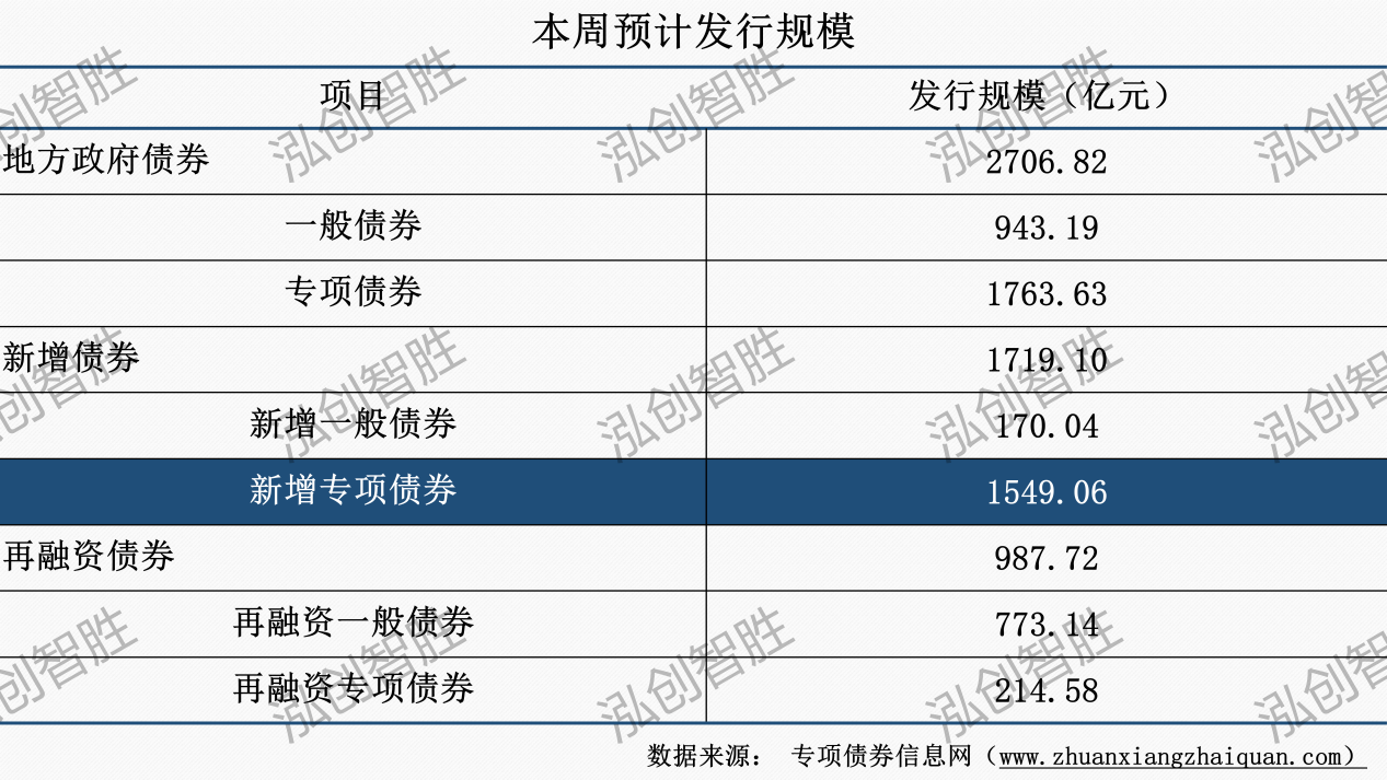 本周地方政府债券发行规模2707亿元;