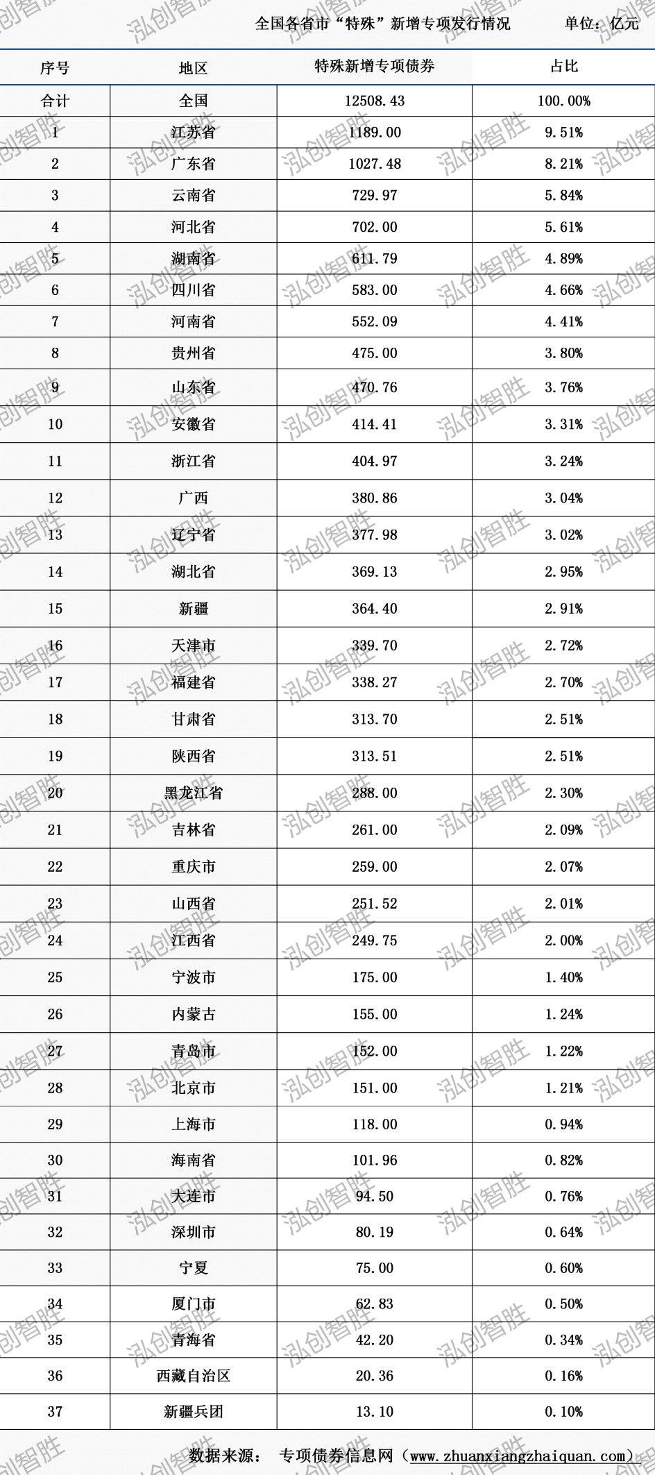 截至10月26日,已有江苏省、广东省等37个地区发行“特殊”新增专项债券,发行规模12508.4294亿元;