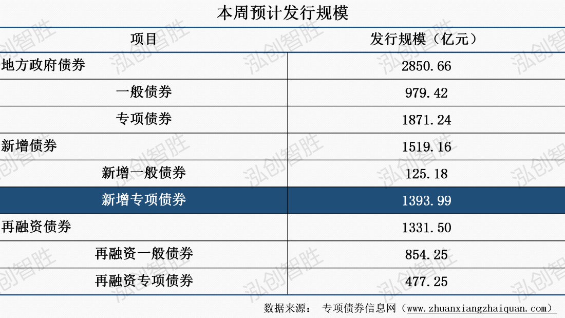 本周地方政府债券发行规模2851亿元;