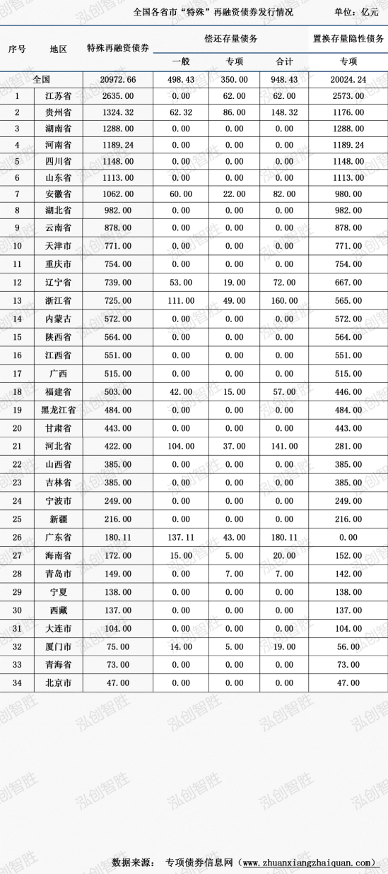 已有8个地区发行“特殊”再融资债券,发行规模20972.6647亿元;用于“置换存量隐性债务”和“偿还存量债务”。