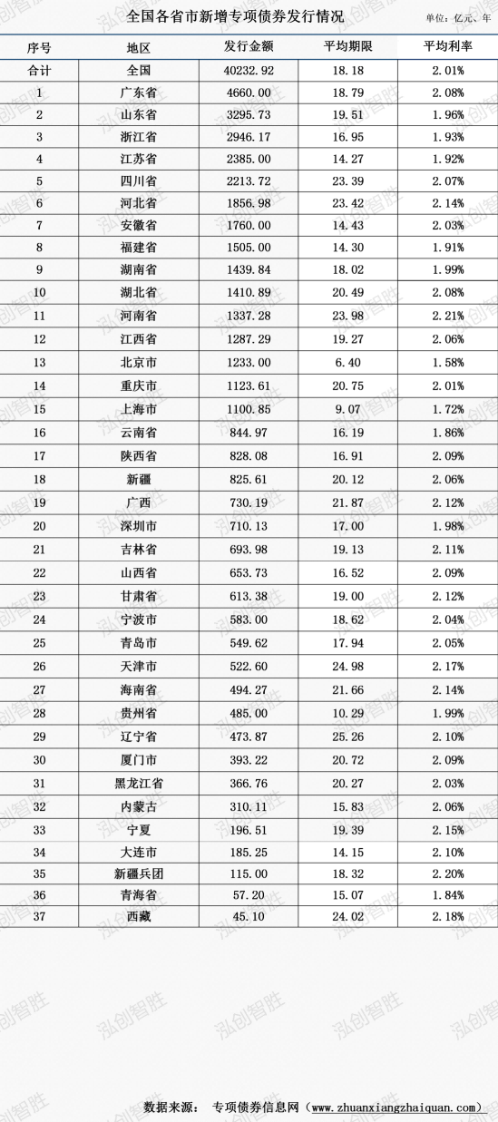 四川、浙江、湖南等6个地区政府债券发行规模超4000亿元;