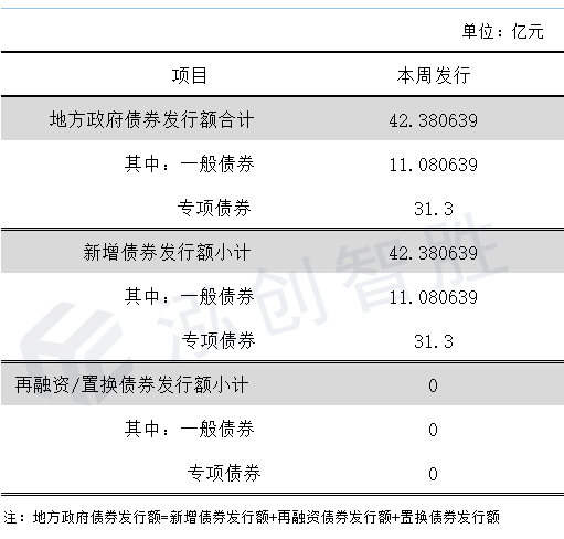 【泓创每周债市0909-0915】本周仅两地区发行42.38亿元地方债