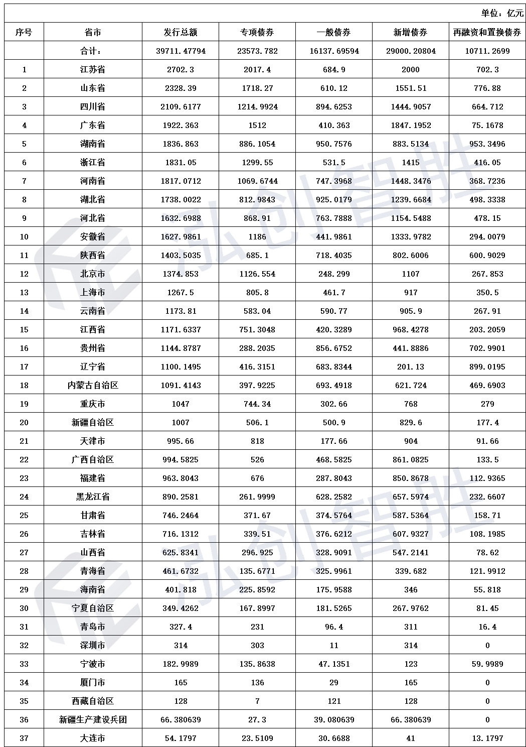地方债发行情况汇总