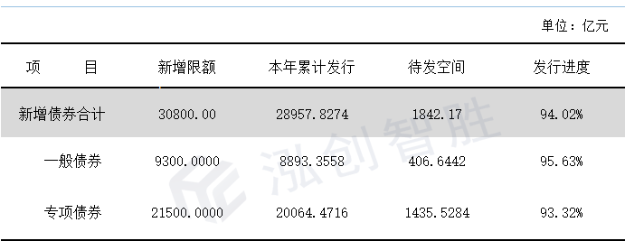 2. 截止至9月8日,发行的新增地方政府债券已完成2019年全年新增地方政府债券额度的94.02%。其中新增专项债仅剩1435.5284亿元余额空间待发,具体情况如下: