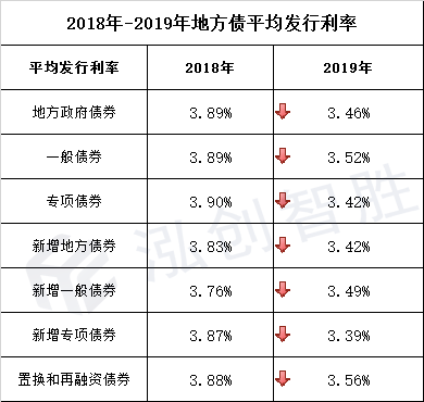 4.2019年地方政府债券平均发行利率3.46%,较18年大幅下降,随着地方政府债券市场化程度的增高,市场对地方政府债券的认可程度也越来越高,发行利率的大幅下降,在一定程度上降低了地方政府融资成本。