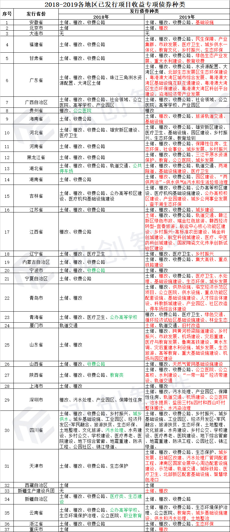 5.2019年地方债的发行品种更加丰富,专项债券开始广泛的应用于各个领域,助力城市发展。多省份新增发行多种专项债券类型,并创新品种。