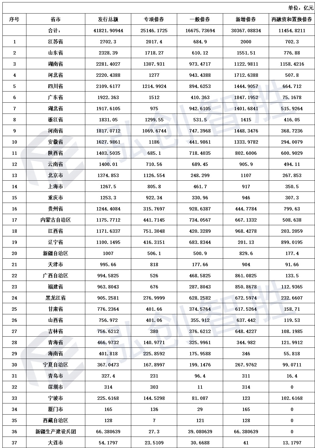 地方债发行情况汇总