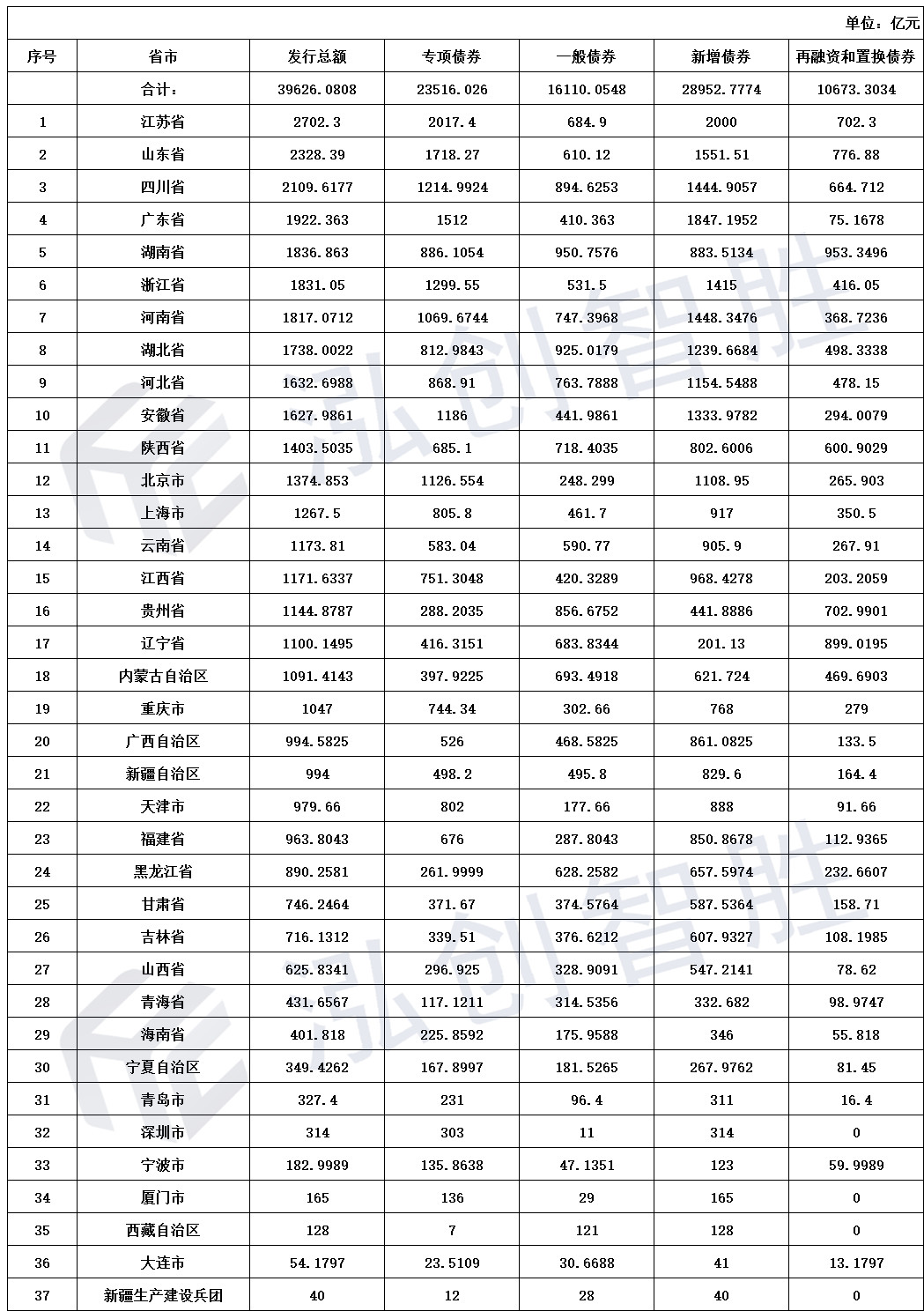 地方债发行情况汇总
