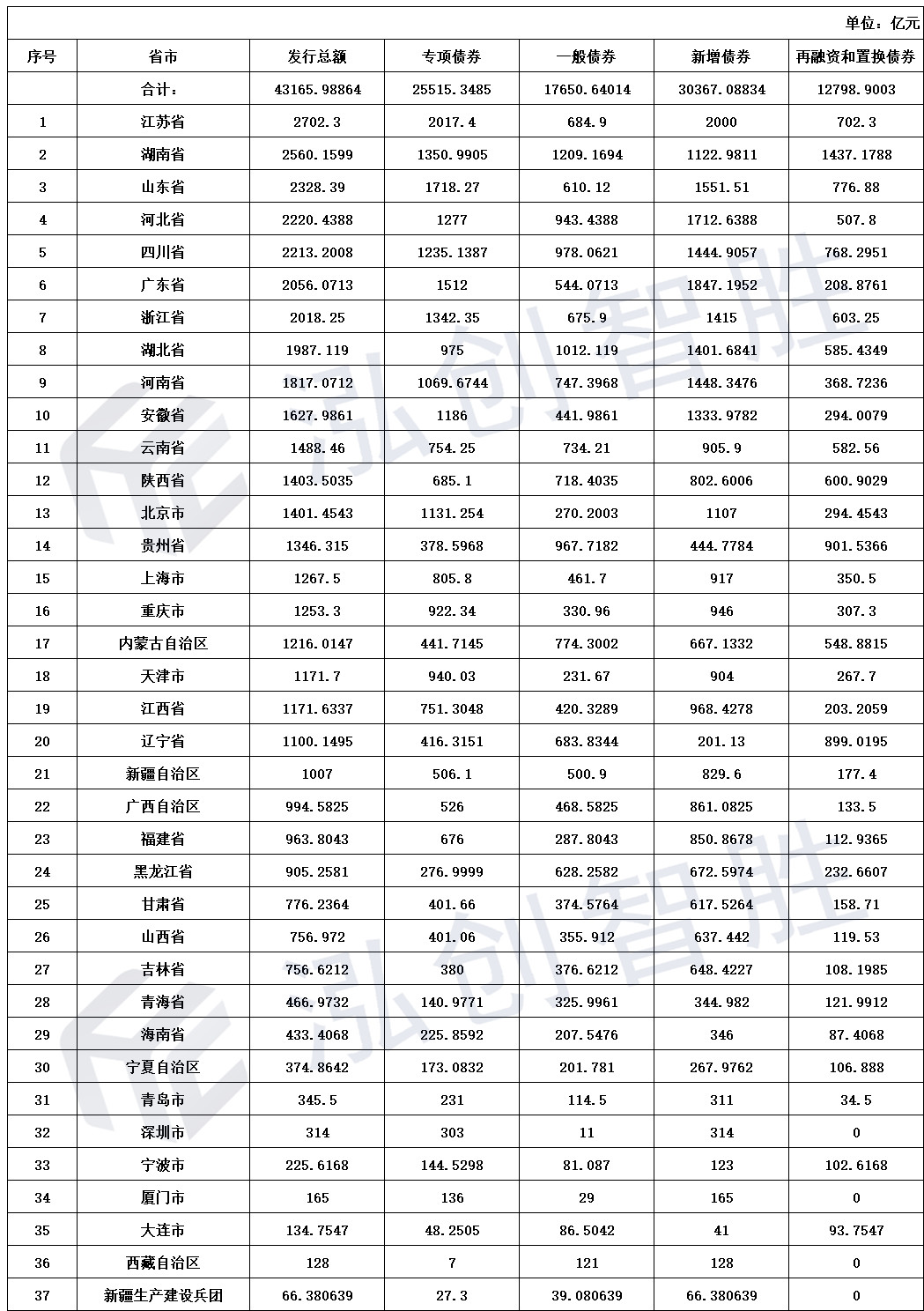 地方债发行情况汇总