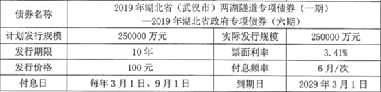 2019年湖北省(武汉市)两湖隧道专项债券(一期)