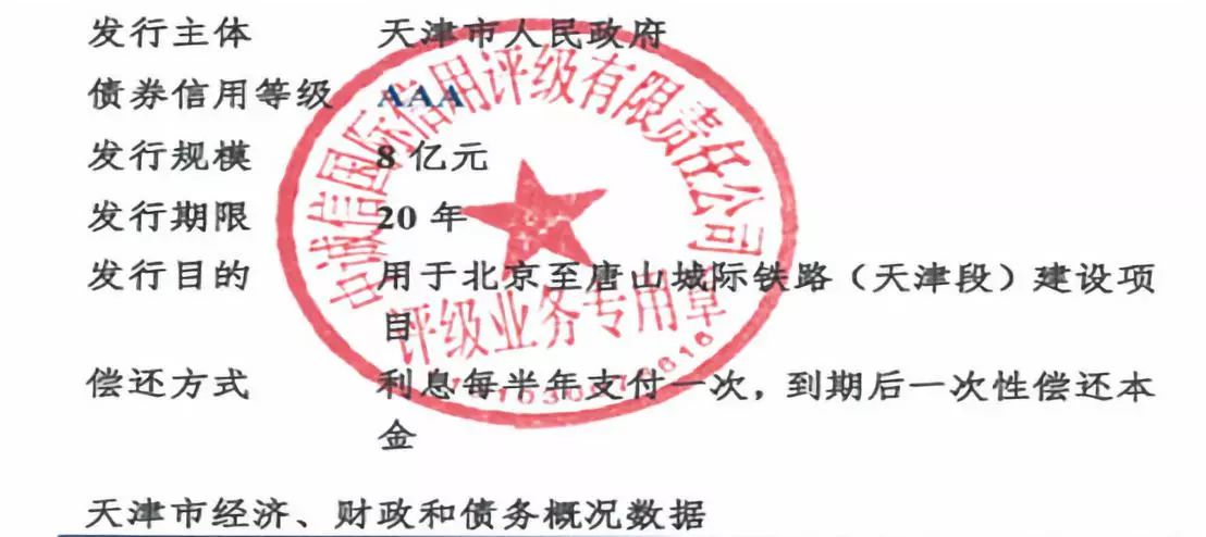 2019年7月9日,2019 年天津市政府城际铁路专项债券(一期)-2019 年天津市政府专项债券(三十二期)正式发行。实际发行金额是8亿元,期限20年,票面利率为3.81%。