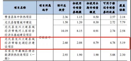 元氏县龙兴大道县域经济带蟠龙湖经济建设项目总投资26000万元,其中财政预算内资金5200万元,占总投资的20%。拟申请政府专项债券资金20800万元,占总投资的80%。2020 年拟申请专项债券资金7900万元,债券期限为5年,利息每年支付一次,本金到期一次性支付。