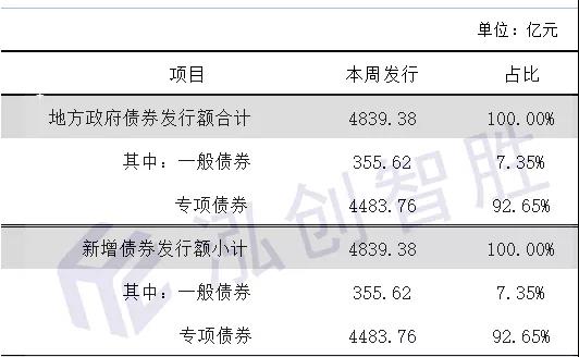 1.上周,全国12个地区发行了135只新增地方政府债券,单周发行规模4839.38亿元,创地方政府债券单周发行新高。