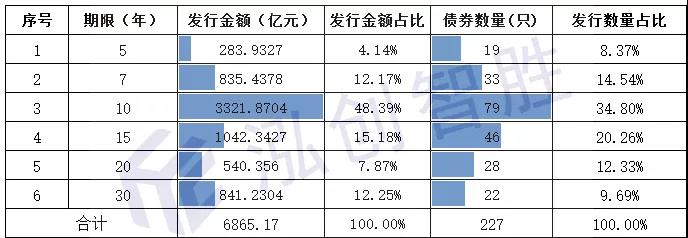 2.2020年截止1月19日,地方债发行期限以10年期为主,7年期、15年期、30年期也占较大比例。