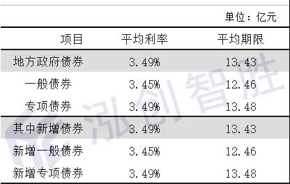 4.截止目前,从投向领域来看,已发行和已披露待发行新增专项债券全部投向基建领域,无一笔用于土储、棚改等房地产领域。从发行期限利率来看,全国已发行地方政府债券平均发行期限13.43年,平均发行利率3.49%,融资成本处于较低水平。