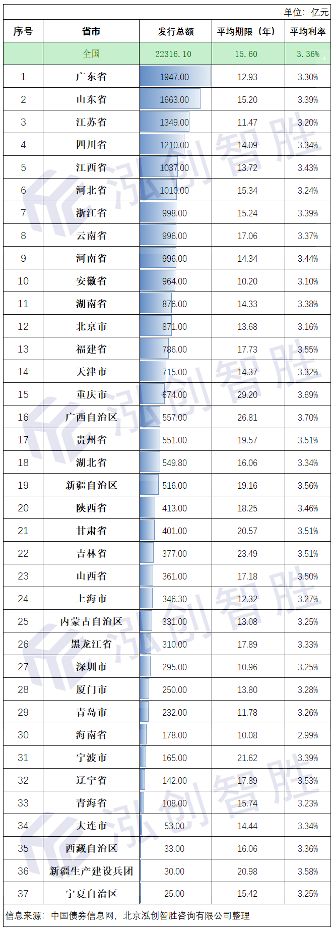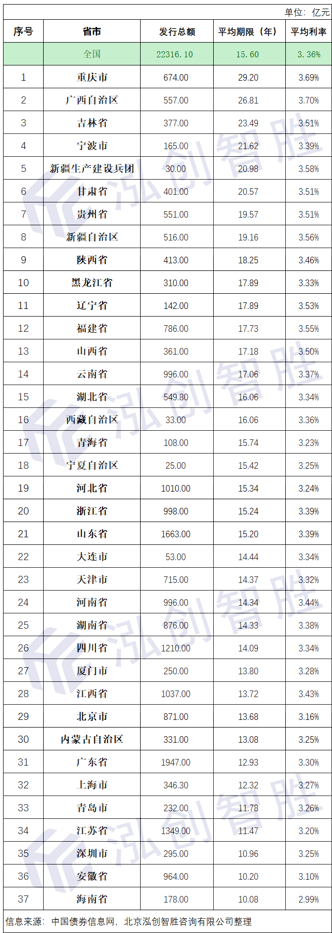 新增专项债券平均期限排名