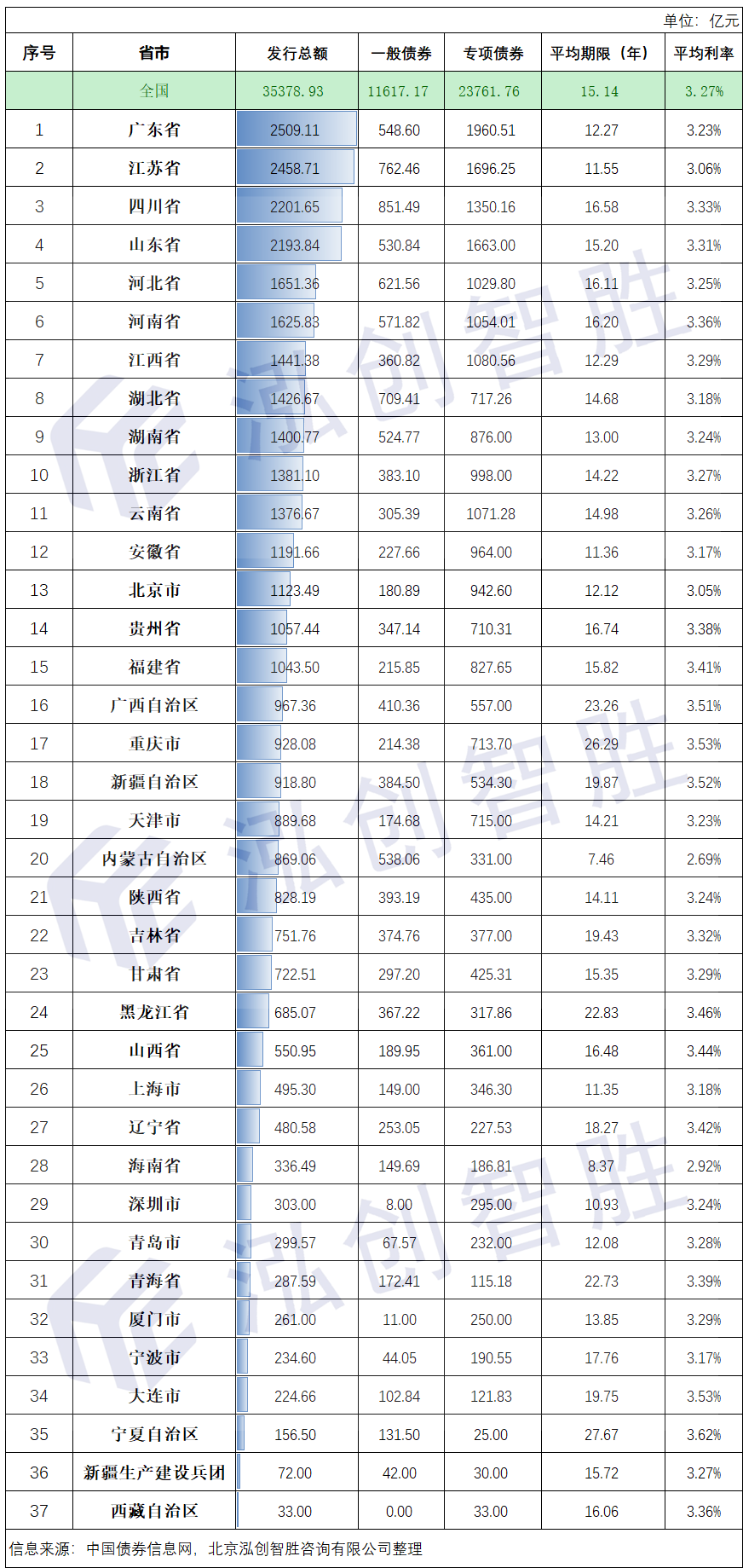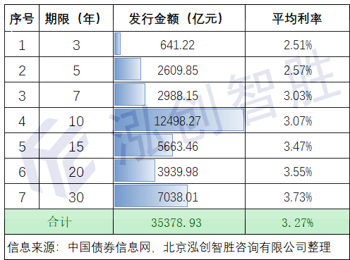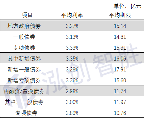 全国地方政府债券的平均发行期限15.14年,平均发行利率3.27%,具体情况如下: