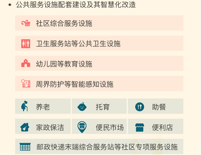 住房和城乡建设部副部长黄艳指出提升类主要是涉及到城市公共服务的供给,包括养老、托育这些更要看老百姓的意愿,如果需要,达成一致后,有条件的根据实际情况提供。