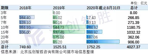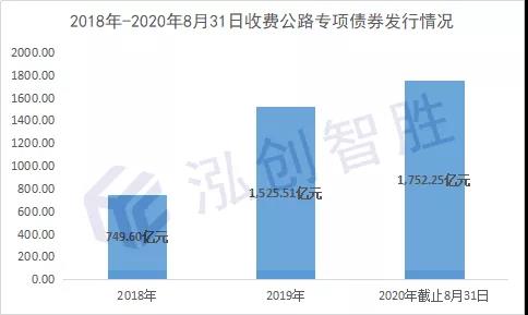 (一)按发行年份来看,发行规模大幅提升。2018年发行749.6亿元;2019年发行1525.51亿元,较2018年增长103.51%;2020年截止8月31日发行1752.25亿元,较2019年全年增长14.86%。各年度收费公路专项债券发行情况如下: